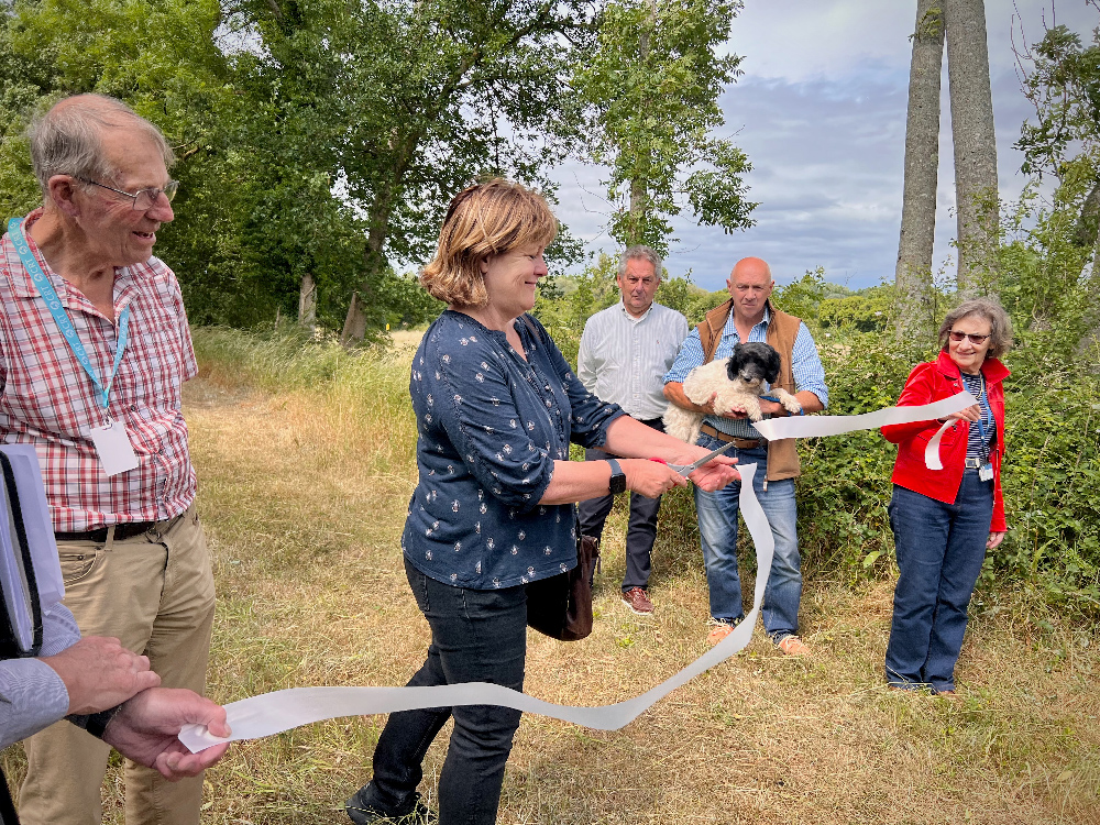 Upon cutting the ribbon that marked a tree-lined corridor rich in birdsong, wildflowers, bees and all manner of small mammals that are testament to her mother’s foresight and conservation commitment, Angela’s daughter, Fiona Gerardin, said, “This is the perfect way of reflecting my Mum’s lifetime of work. She absolutely loved the area where the reserve has been created and talked so much of the plans that she had for it.
