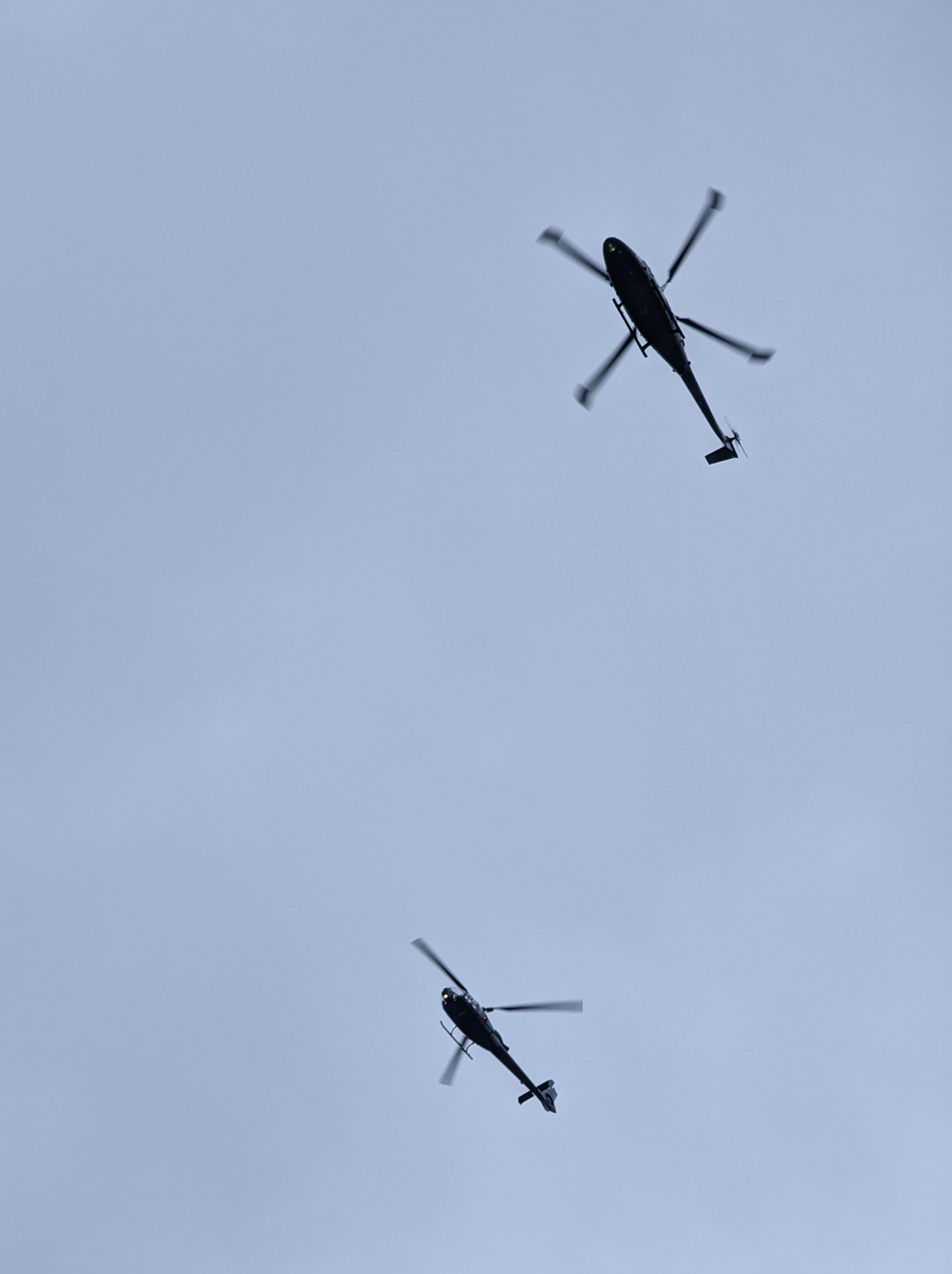 The soldiers were inspected and three Army helicopters flew over the parade as the crowds looked on.