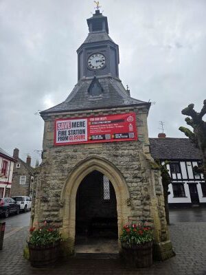 A BANNER has appeared in Mere as opposition grows to controversial plans that could see the town’s fire station close.