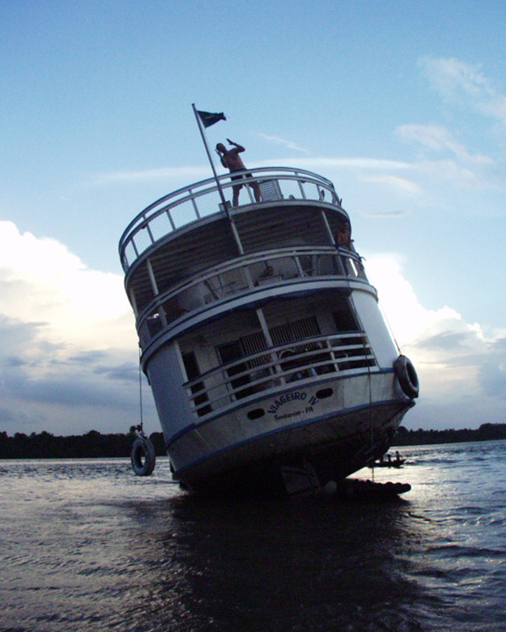 Nearing the completion of the 4,000km reed boat voyage from the Andes to the Atlantic in 2001, our three-decker support vessel, nicknamed ‘El Viagra’, ran aground at the mouth of the Amazon. As the tide receded, ‘El Viagra’ began to list and, fearing she would topple over, we moved to the top deck. To boost morale we laid on an instant Burns supper. After a few drams no one noticed we had a 20 degree list! Fortunately, at dawn the tide reflated us.