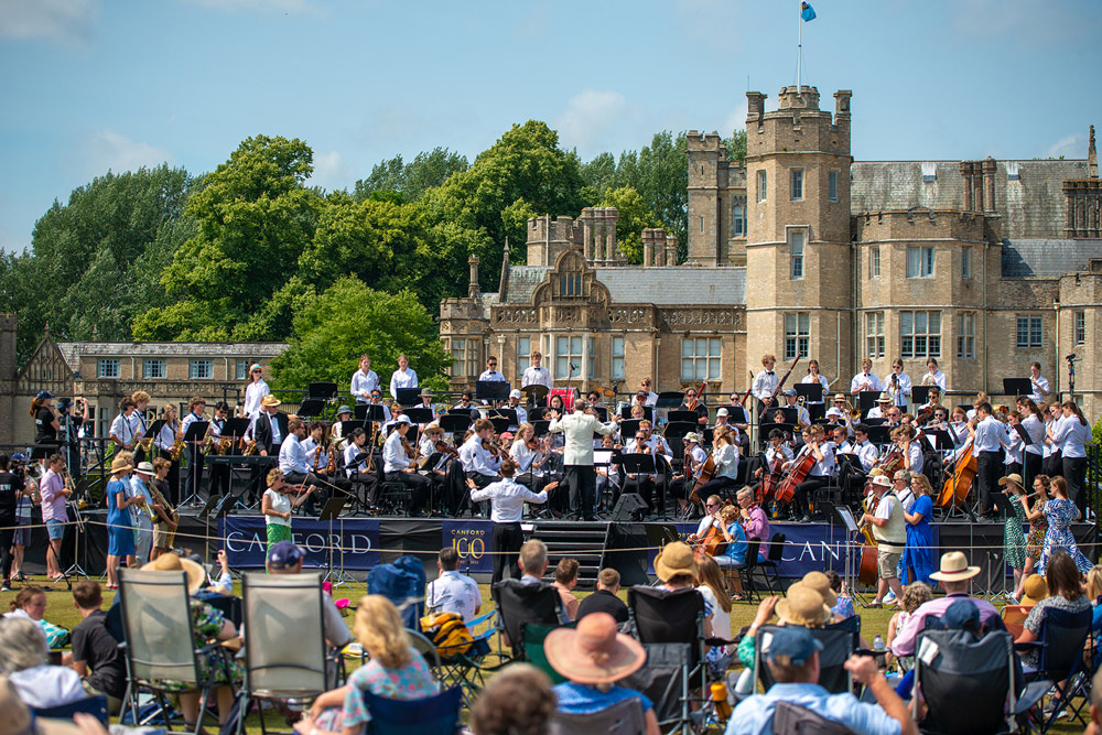 The orchestra, wind orchestra, concert band and jazz band, involving more than 80 school musicians, and Friends of Canford Music, played an ambitious and varied two-hour programme ‘Proms in the Park’ style.