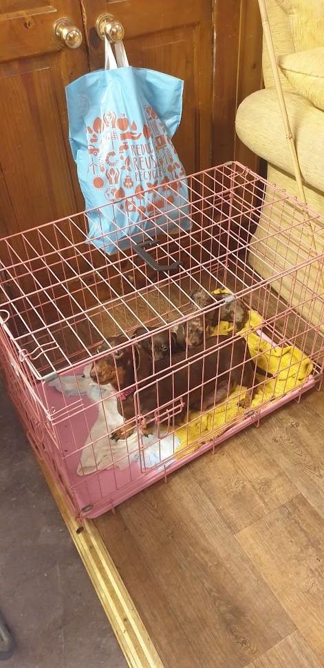 They saw puppies in very cramped conditions, with howling and barking dogs in a cupboard under the stairs, seemingly in distress. Three cats were also present, with two in a cage.