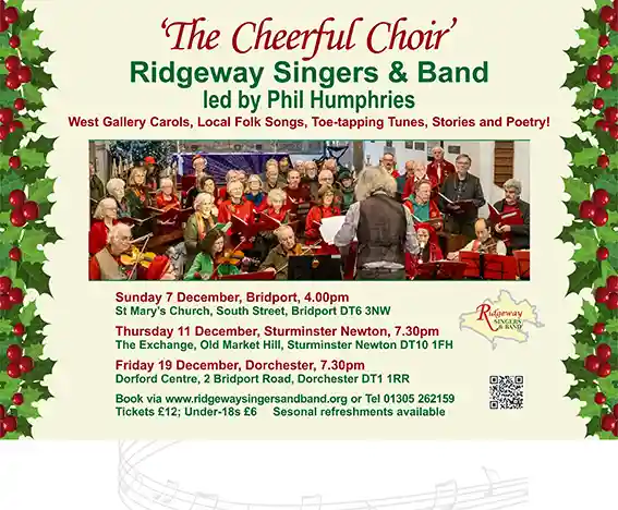 Christmas is coming and once again the Ridgeway Singers & Band are preparing to bring their popular seasonal celebration to three locations around Dorset, with local songs, carols, toe-tapping tunes, stories and poetry – including some contributions from Cornwall this time. The group was formed twelve years ago for an Artsreach project, its mission to […]