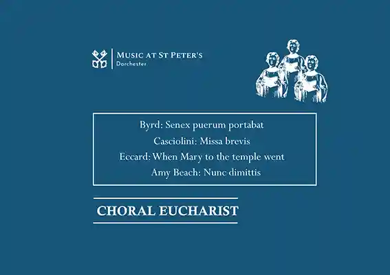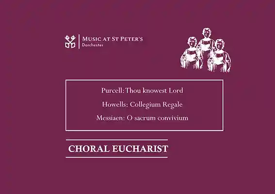 You are warmly invited to our cathedral-style service of Choral Eucharist on Sunday 22nd February at 10.30am in St Peter’s Church, Dorchester. The music includes: Howells’s ‘Collegium Regale’, Purcell’s ‘Thou knowest Lord’ and Messiaen’s iconic motet ‘O sacrum convivium’. All are very welcome to this free service and for refreshments afterwards. More information at www.musicatstpetersdorchester.org