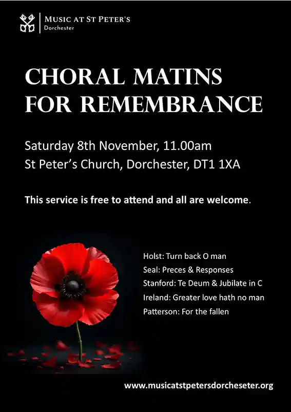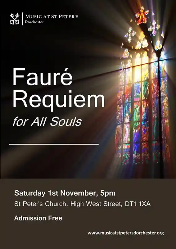 St Peter's Church (Dorchester) High West Street, Dorchester, DorsetJoin us at St Peter's Church Dorchester on Saturday 1st November at 5pm for our annual Requiem for All Souls. Fauré’s ethereal ‘Requiem’ is complemented by two of William Harris’s […]