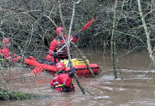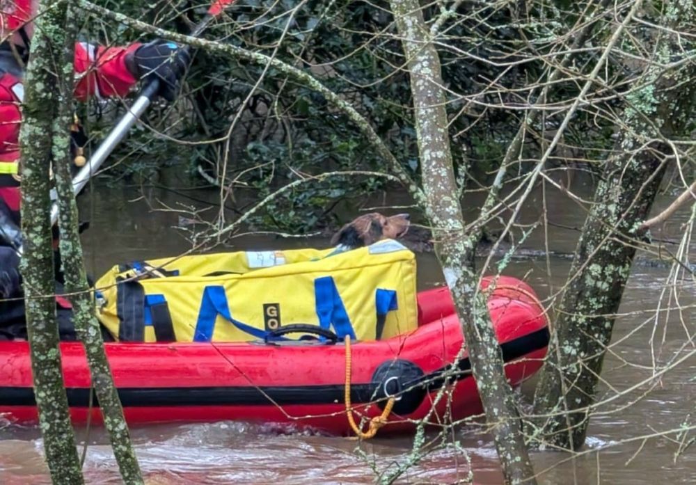 Today, Ferndown Fire Station crew worked with Poole’s Tech Rescue to save pup Roxy, after she was spotted being washed down a flooded river in West Moors.