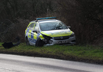 Police car damaged in crash on busy A37 at Dorchester