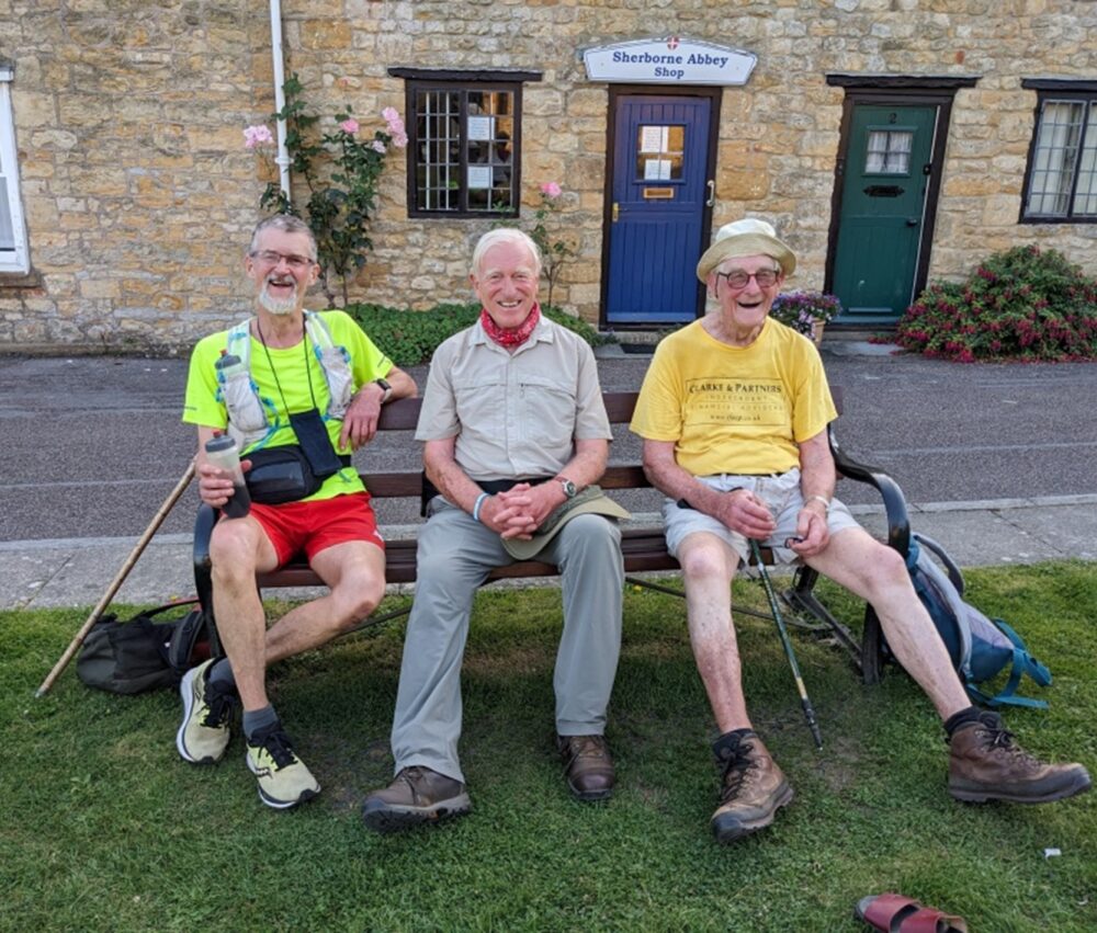 Not to be out-done, at 8am, Eric Jager ran a marathon from Frome St Quintin church – via many others – back to Sherborne Abbey, where at 6.45pm he met up with Mike and John for a well-earned rest on a bench outside the Abbey.