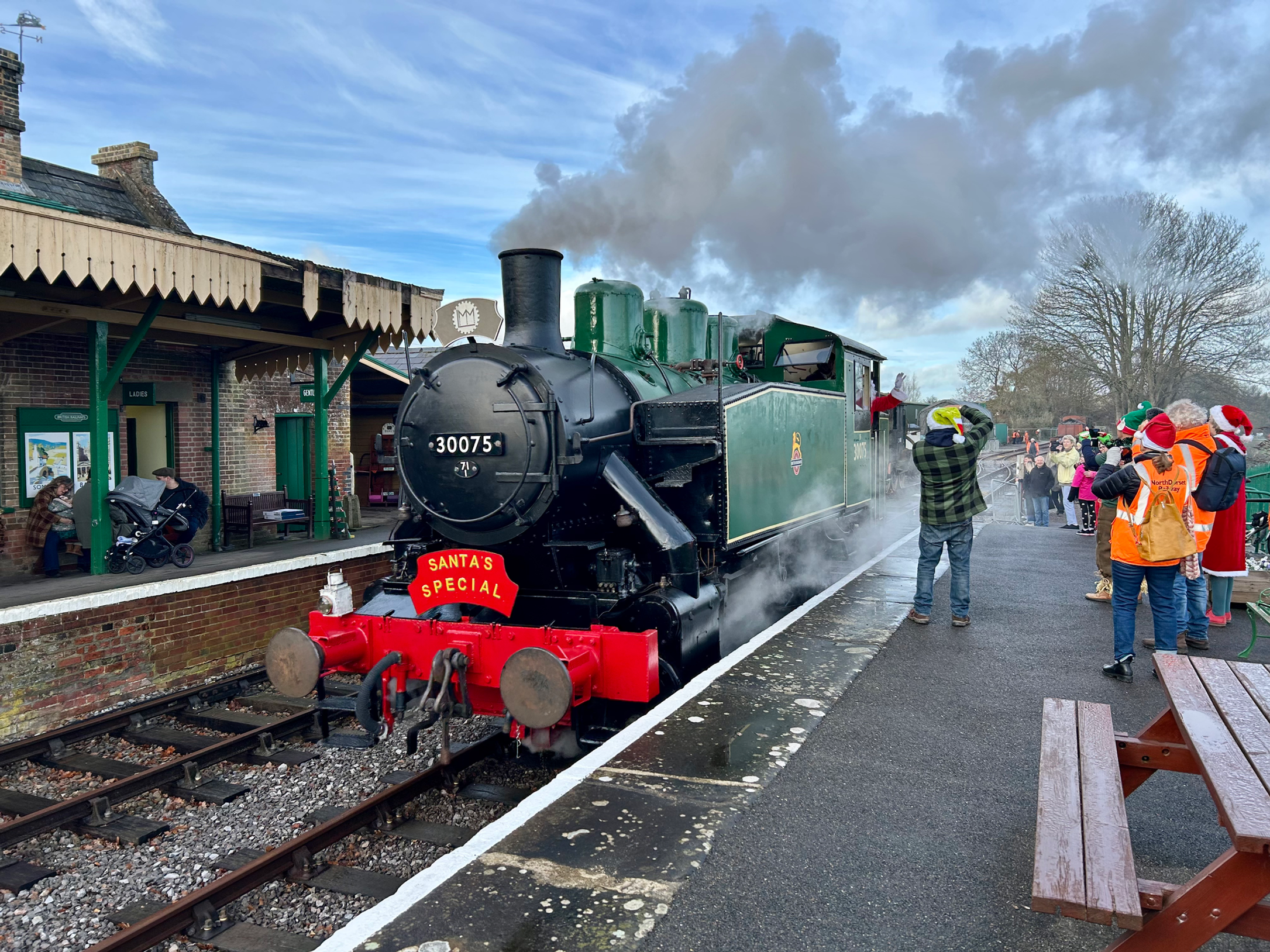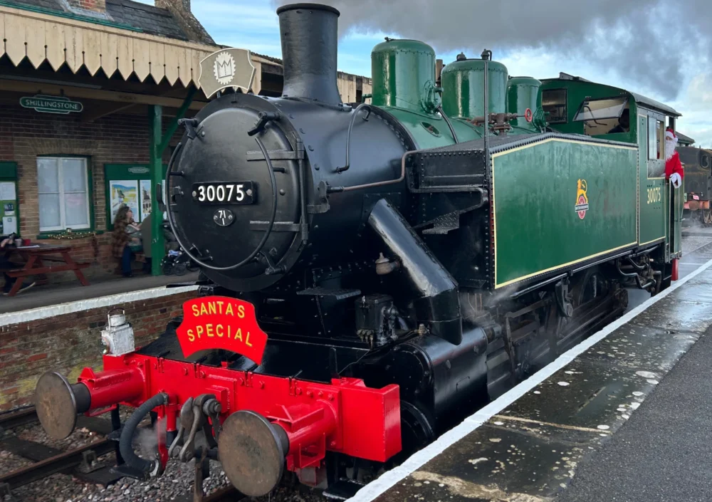 The newly restored locomotive made its first official public appearance on Sunday, hauling a Santa Special service along the recently completed line extension at the North Dorset Railway.
