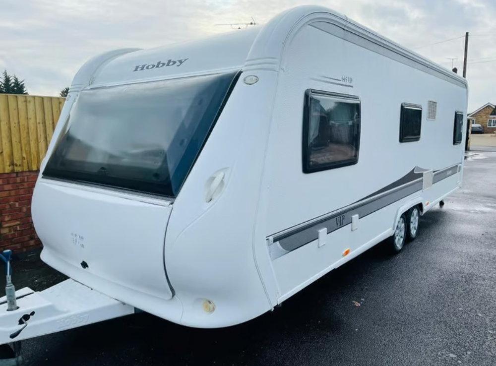 The white and grey Hobby 645 VIP caravan was stolen from a field where it was being stored.