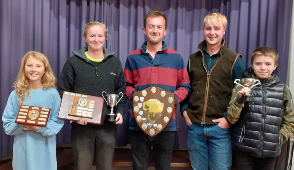 At their Harvest Supper in September the club awarded its first set of new trophies: Isobel Green and Guy Mitchell (not pictured) shared the trophy for most competition points for a Junior or Intermediate, Clover Crosse (club treasurer) won the most competition points for a Senior as well as the Matt Weeks Challenge Cup for best senior member. Jamie Pottow (club chairman) is pictured holding the Club of the Year shield awarded to Salisbury YFC this year. Will Thomlinson (vice chairman) was awarded the Flamstone Farm cup for Leader’s Member and Adam Damant is pictured with the Bright Seeds cup for best junior member.